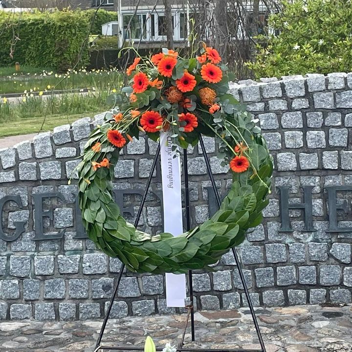 Afgelopen week hadden we bij Groenkoop de eer om een fraaie krans te maken voor de @Oranjevereniging Vroomshoop. Deze is bij de officiele Dodenherdenking van 4 mei geplaatst.